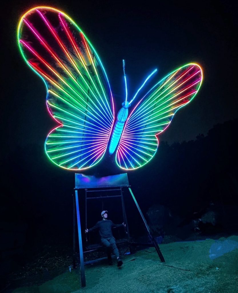 ブランコの揺れに合わせて蝶々の羽が羽ばたき、周りに風が巻き起こります。他にはない幻想的な輝くブランコでぜひ遊んでみてはいかがでしょう?