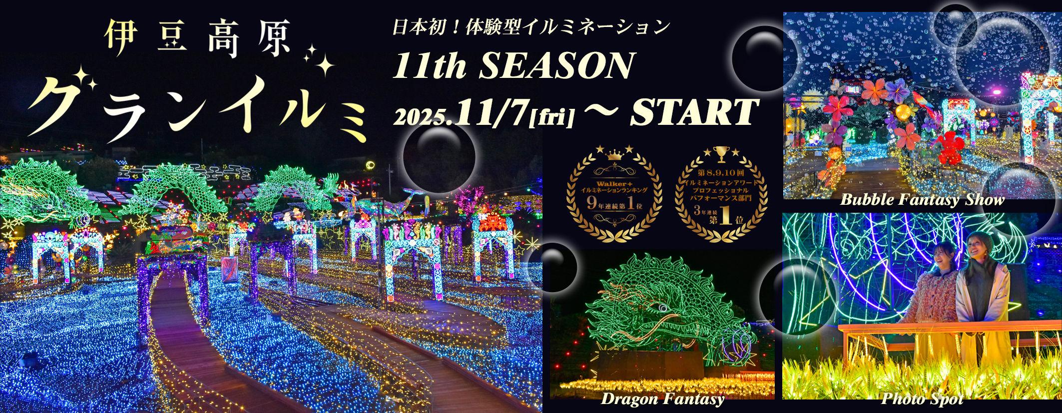 シーズン毎に違う世界観が楽しめるイルミネーションを目指し進化を続ける伊豆高原グランイルミ。2025年11月にスタートする11th SEASONの新たなストーリーをお楽しみにしてください。